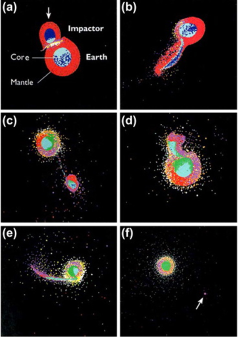 Consecuentemente, las colisiones entre átomos de esta nube de gas produjeron un gran número de átomos y moléculas diferentes, como moléculas orgánicas, así como partículas sólidas de hielo, óxidos de metales y otros tipos de sólidos. Estos serían los bloques sobre los que se conformaría la Tierra y el resto de vecinos planetarios.