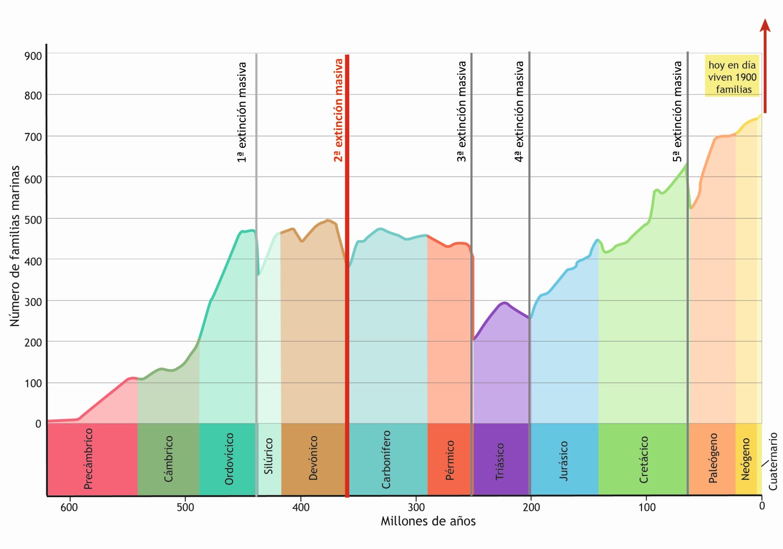 En primer lugar, hay que decir que la mayor parte de la vida se desarrollaba en medios acuáticos, preferentemente marinos y poco profundos, pero también de agua dulce. Hace ya algunos cientos de millones de años que habían comenzado los experimentos azarosos que llevaban a desarrollar formas de vida cada vez más complejas a través de innovaciones evolutivas que serían cruciales para los seres herederos (incluidos nosotros mismos) que pudieran sortear los muchos peligros que estaban por venir.