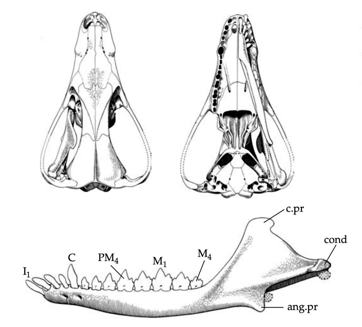 Morganucodon es el mejor representante de los mamíferos ancestrales (Figura 2). Básicamente reúne una serie de refinamientos morfológicos que tuvieron su origen en los cinodontes. Por ejemplo, Morganucodon ya presenta el dentario con un cóndilo en forma de bola que se articula con una cavidad glenoidea bien definida en el escamoso. Además, en la pata trasera se produce la superposición del astrágalo sobre el calcáneo. Durante el Mesozoico, a lo largo de más de 140 Ma (Jurásico y Cretácico), se produjo la radiación en numerosos subgrupos desde el primer mamífero triásico. La dentición evolucionó con importantes novedades; sin embargo, el tamaño corporal seguía siendo el de un animal pequeño. Tras la extinción de finales del Cretácico se produjo la gran radiación de los placentarios.