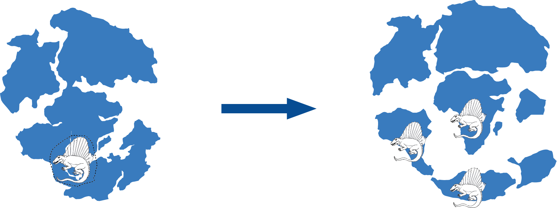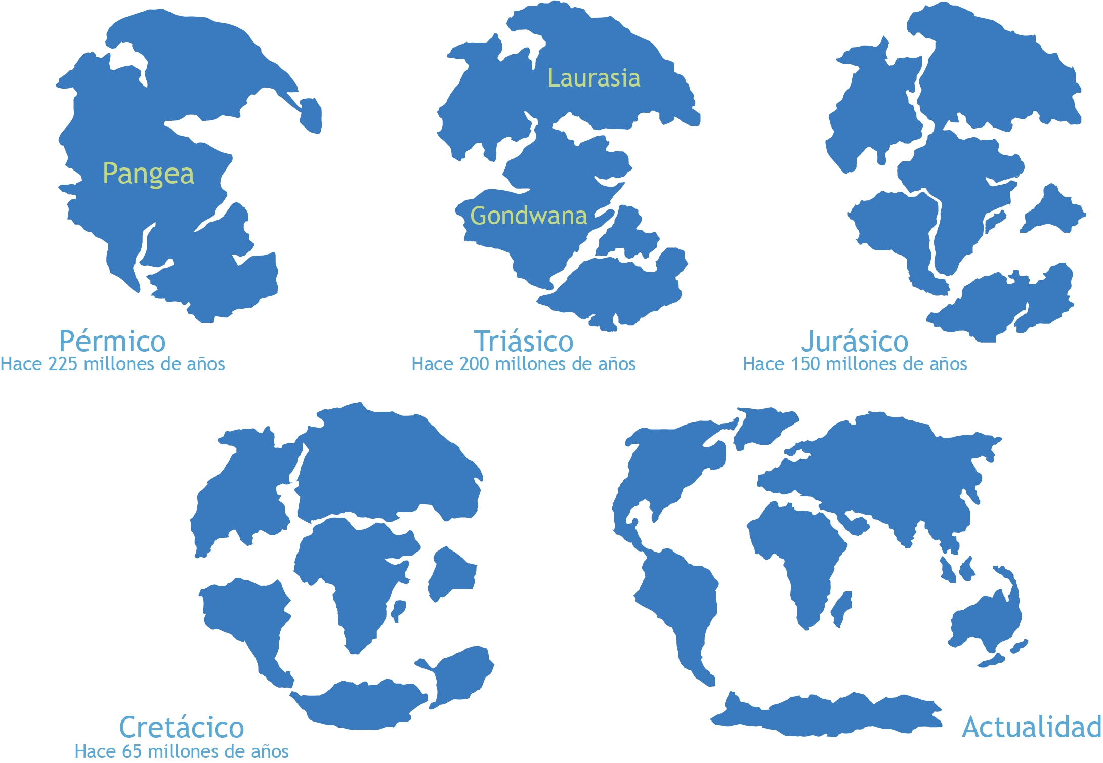 Hoy en día la geografía terrestre es distinta, con varios continentes separados por océanos. Esto nos indica que, en un momento dado de la evolución de la Tierra Pangea se fragmentó.